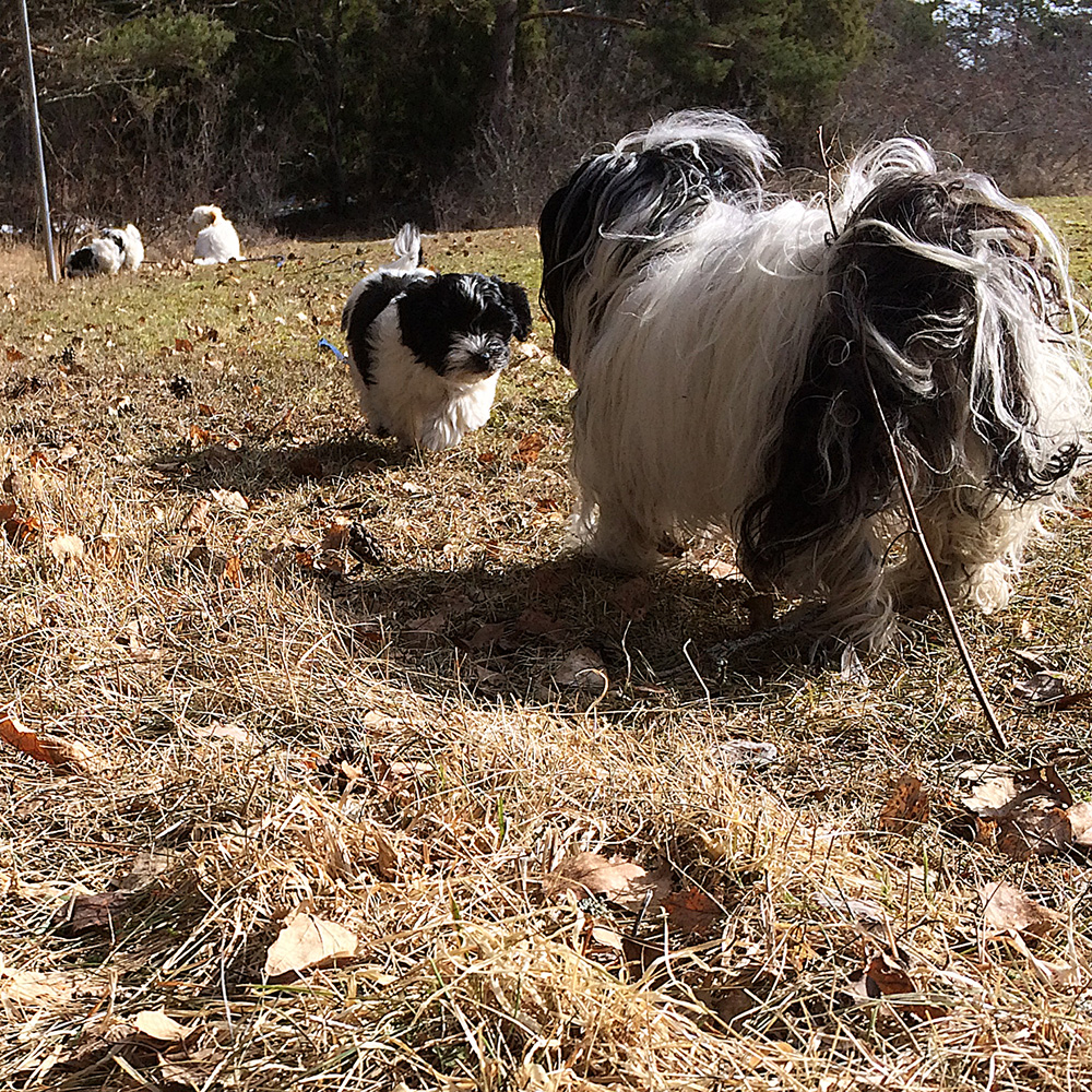 IMG_6397 Apr2 Publicerat kl. 1000 × 1000 Beckie hälsar på mamma Tatankas Kennel Bichon Havanais valpar D-kullen